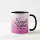 Une jolie parties scintillant rose chaude et moderne à l'ombre design Sweet 16 mug. La parties scintillant rose se détache sur un arrière - plan blanc. Le texte "Sweet sixteen" en noir est défini dans un script moderne. Un cadeau parfait pour un Sweet sixteen glamour, parfait pour elle, la fashionista qui aime motif moderne, étincelant, luxe et glamour.
