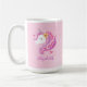 Un joli visage de licorne magique de fille rose orne cette tasse. Un grand cadeau pour les filles. Ajoutez votre nom à l'avant, à l'arrière. Conçu pour vous par Blackberry Boulevard.