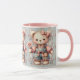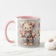 Mug Pastel Teddy Bear Holding Flower Wear Overalls