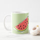 Design cool avec une touche rétro avec des tranches stylisées de pastèque sur un arrière - plan vert pâle. Un design personnalisable pour personnaliser avec votre propre texte, images et idées. Une image art numérique originale.