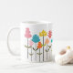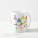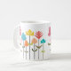 Cette tasse a un design moderne du milieu du siècle de fleur faite de carrés, ovales et diamants qui ont été manipulés pour former des fleurs.
