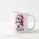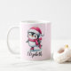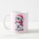 Créez une tasse de Noël personnalisée unique avec un design festif qui comprend un patinage de pingouin mignon en chapeau de Père Noël rose, écharpe et patins à silhouette. La scène hivernale girly ajoute des ambiances festives à la saison des fêtes, ce qui en fait une tasse idéale pour le chocolat chaud, le cacao, le café ou le thé pendant la saison de Noël. Personnalisez-le avec votre nom pour créer un cadeau amusant pour les amateurs de pingouins, les enfants et ceux qui aiment le patinage sur glace et les activités de vacances hivernales. Utilisez le modèle pour ajouter un nom.