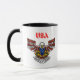 A bold and patriotic illustration featuring a bald eagle in flight, a strong national symbol of the United States. The eagle's wings are designed with elements of the American flag, using red, white, and black colors and white stars against dark feathers. The graphic has a distressed, stylized look, contrasting with the realistic depiction of the eagle's head. The text "USA" is displayed prominently in red at the bottom of the image.