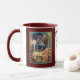 Give a patriotic American gift with this beautiful Christian Christmas mug. This devotional Christmas mug features a view of the Nativity scene in a stained-glass Church window with the American Flag draped over the Bible. The messages is "May the light of Christ bless you this Christmas, and may we always be thankful for the blessings of faith and freedom in our country."