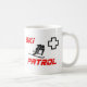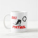 " Patrouille de ski" écrite, entourant un graphique de skieur, avec une croix de patrouille dans le bon coin.