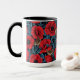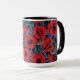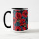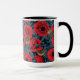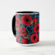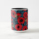 Mug Pavot rouge et brunes, feuilles bleus sur noir