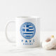 Paxi, une tasse à café grecque avec le drapeau national de la Grèce à l'intérieur d'un modèle de cercle bleu motif clé grec. Cette tasse est parfaite pour boire son café pendant vos vacances à Paxi en Grèce ou si vous êtes fier d'être de Paxi.