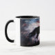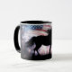 Une belle tasse à café avec un cheval noir drapeau américain et feux d'artifice. Une tasse de l'Ouest du pays amusante.