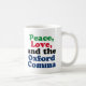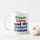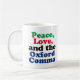 Paix, love, et le Comma d'Oxford. A hilarious punctuation mug with proper use of the Oxford comma. This funny grammar joke will be a hit with an English literature teacher or writer.