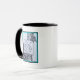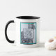 Mug Peacock & Leaf Blk & Whit Ink Turquoise Border.