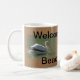 Ajoutez une touche de nature à votre maison de plage avec cette tasse de thé ou de café du matin avec une photo de pélican. Ce beau grand oiseau flotte sur l'eau et se détache. Le pélican apparaît de part et d'autre de la tasse avec "Welcome To The Beach House", Photo originale - C. McGouldrick
