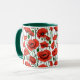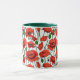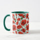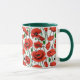 Mug dans un motif délicat de pavots rouges vibrants avec des tiges vertes profondes et des feuilles, sur un certain temps arrière - plan, avec, chaque fleur de pavot unique courbé et tordu, comme si se balançant doucement dans la brise.