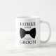 Conception présente une tasse à café moderne avec "Père du marié", noeud papillon et date du mariage.