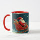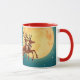 Père Noël dans son traîneau avec rennes. Pleine lune la veille de Noël. Illustration populaire.