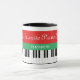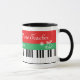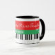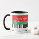 Grand piano clés Mug de Noël pour un pianiste, pianiste, étudiant, enseignant, musicien, instructeur, enfants, amis, etc. Clés de piano noir et blanc avec rayures rouges et vertes, cloche jingle mignonne et flocon de neige avec élégante typographie "Père Noël Favorite Piano Teacher". Elégante idée cadeau d'hiver personnalisé pour lui.