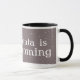 Personnalisez cette tasse saisonnière amusante avec vos propres mots pour répondre à vos besoins. Cette amusante tasse festive de rennes à nez rouge dit actuellement "Père Noël arrive". Fabriquerait un grand remplissage ou un cadeau avant Noël.