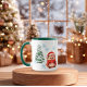 The cutest Christmas gift for animal lovers: the custom hedgehog mug!Description: Embrace the holiday vibe with this custom mug featuring a cute Christmas hedgehog design wearing a Santa Claus hat and scarf, surrounded by snow trees. This mug isn't just a bowl for your drink, it's a warming piece of art, with a sleek touch of the handle and a Hunter Green interior. Why would you love this mug?
