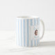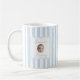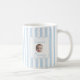 Celebrate her new role as mom with this charming personalized coffee mug featuring a baby name and "Mommy" title in a delicate framed design. The soft blue vertical stripes create a fresh, modern look perfect for morning coffee or tea. A thoughtful gift for new moms on Mother's Day, baby showers, or hospital visits.