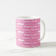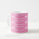 A pretty personalized mug gift for a little girl decorated in nine different fonts spelling your name in white. Cute customizable present with fun typography.