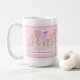 Surprenez quelqu'un de spécial avec un cadeau unique pour la Saint-Valentin. Avec son design floral en forme de coeur unique, ses charmants oiseaux, ses frises pois et ses frises à pétoncles branchées, cette jolie tasse à café présente une palette de couleurs rose, pêche et violet douce pour une touche fantaisiste. Ce qui distingue cette tasse est la possibilité d'ajouter une touche personnelle avec du texte personnalisable. Express ton amour et ton appréciation avec des sentiments comme "Bonne Saint Valentin" ou "Meilleure maman du monde". Créez un don significatif pour express votre amour et votre appréciation pour une femme spéciale dans votre vie.