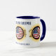 Personnalisable 2024 TOTAL SOLAR ECLIPSE USA Coffee Mug, avec TEXTE PERSONNALISABLE, pour célébrer l'Éclipse solaire totale sur Continental USA, Canada et Mexique en avril 2024. LE TEXTE PERSONNALISABLE LIT TOTAL SOLAIRE ECLIPSE et NOUS L'AVONS REGARDÉ AUX ÉTATS-UNIS D'A, que vous pouvez changer à votre message personnalisé préféré. La conception montre une éclipse solaire avec effet or 2024 au milieu et le drapeau américain derrière elle. Achetez une chaudière solaire patriotique USA Coffee Mug pour toute la famille ou pour les invités de votre fête de montre ! La totalité en vaut la peine ! Offres de fête et cadeaux de souvenirs correspondants aux États-Unis disponibles.