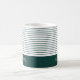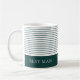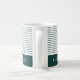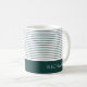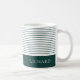Un design rayé classique et élégant, vert émeraude et blanc. Ajoutez le nom de votre meilleur homme et il adorera ce gardien du jour de mariage. Lignes minces en vert foncé avec une bande audacieuse à travers le fond. Cela pourrait devenir la tasse préférée de votre ami.