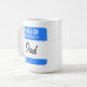 Unique, tendance, tendance, tendance, décoratif et tasse cool pour café, thé, lait ou jus. Avec une belle image contemporaine de couleur bleue et blanche "Hello! Mon nom est papa" étiquette de nom, qui peut être customisé ou personnalisé avec maman ou un nom court ou un autre mot de votre choix. Ce design drôle, moderne et fantaisiste a été créé pour la mère ou le père le plus génial, le plus grand et le meilleur du monde. Cadeau mignon et amusant pour l'anniversaire de maman ou de papa, de mère ou de Fête des pères, ou cadeau de Noël. Vaisselle originale, chic, élégante et cool pour siroter votre boisson préférée à la maison, au travail au bureau, en vacances, ou tout en se reposant et ne faisant rien du tout.