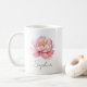 Prenez votre café avec classe avec notre mug personnalisé orné d'une jolie fleur de pivoine en aquarelle et du prénom de votre choix.