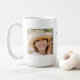 Customisez cette mignonne tasse à café avec deux de vos photos préférées. La tasse dit : Je t'aime, maman, et je peux être personnalisée avec ton nom et ta date.