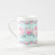 Tasse personnalisée. Style chic et habby, cadeau floral pour elle. Roses roses sur bleu aqua arrière - plan, design romantique. Ajoutez votre nom ou tout texte.