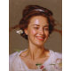 "Petal Pride" Margaret - Art & Floral Society. Margaret est enseignante à l’école et a une cascade de fleurs qui encadrent son visage montre une femme qui est clairement fière de ses réalisations florales, même si elles semblent un peu absurdes capturées dans le portrait aquarelle humoristique stylisé.