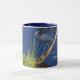 Petit Héron Bleu sur un membre au milieu d'un étang aux herbes, et une belle tranche de lumière.