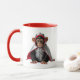 Ce bébé singe a l'air sérieux et prêt pour l'aventure. Il porte un costume bleu avec un symbole de héros sur la poitrine et une grande cape qui flotte derrière lui. Son regard intelligent et ses grands yeux curieux lui donnent une expression unique. Son pelage noir et doux contraste avec sa tenue de super-héros, ce qui le rend encore plus impressionnant. On dirait qu'il est prêt à sauver le monde avec ses super-pouvoirs.
