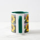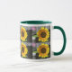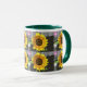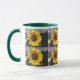 Conception de tournesol répétée sur tasse de café robuste - deux tailles, personnalisable avec différentes couleurs, tailles. Éclairez la journée de quelqu'un avec cette tasse vivante !