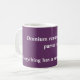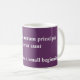 Une tasse violette et blanche avec un guillemet latin et la traduction anglaise sous la police blanche. "Tout a un petit début" est une citation de l'avocat romain Cicéron.
