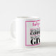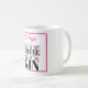 Tease tes amis en utilisant cette tasse personnalisée. On peut y lire : "Peut-être du café, peut-être du gin" et peut être personnalisé avec votre nom. Le design est propre et simple en rose et noir choquant sur une tasse blanche.