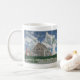 Tasse à café imprimée avec un tableau de la maison du gardien de lumière au phare de Cedar Point à Scituate, Massachusetts. Oeuvre : Aquarelle sur panneau. Copyright Dominic A. White. Tous droits réservés.