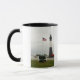 Photo du phare de Tybee (situé sur l'île Tybee à l'extérieur de Savannah, Géorgie) avec panneau de la station de phare de Tybee Island et drapeau américain sur une tasse