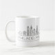 Cette tasse comporte une illustration stylisée de l'horizon unique de la ville avec son nom dessous.
