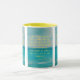 Cette tasse à deux tons présente une police d'impression harmoni bronzée avec des lettres jaunes présentant le verset de la Bible "Philippians 1:6 KJV" sur une photo arrière - plan offrant une vue sur l'océan avec une belle eau bleue du rivage sous un ciel partiellement nuageux. Ce verset fait référence au Livre de Philippiens 1er chapitre montrant le 6ème verset de ce thème de citation biblique de la Bible du Roi James. La jante et la poignée sont émaillées dans des couleurs assorties disponibles en 11 onces ou 15 onces de micro-ondes de taille et lave-vaisselle en céramique de construction sécuritaire.