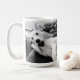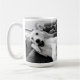 Cette mignonne tasse présente une photo en noir et blanc d'Olive, un mélange très expressif au Labrador, accompagné d'un texte personnalisable.
