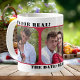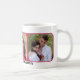 Mug photo avec date de sauvegarde avec vos propres photos sur un design simple. Dans l'éditeur avancé, vous pouvez choisir une couleur différente pour la forme rouge si vous le souhaitez (ou vous pouvez également la supprimer si vous n'en avez pas besoin). Excellent comme mug de date de sauvegarde ou de mariage et personnalisable pour d'autres occasions.