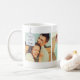 Créez un cadeau parfait pour garder la mère de la mariée. Cette tasse de café est prête à être personnalisée avec trois de vos photos en forme de carré préférées et comporte une étiquette blanche avec le message "Mère de la mariée" écrit dessus en écriture en noir.