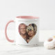 Un cadeau sucré pour n'importe quelle maman. Parfait pour un anniversaire ou la fête des mères ! Il suffit de télécharger votre photo préférée de maman et enfant dans la zone personnalisée. Il se transforme automatiquement en coeur. Et vous pouvez aussi customiser le message à l'arrière de la tasse !