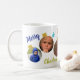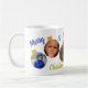 Cette mignonne tasse colorée présente des ornements de Noël ronds avec des ornements comme des photos de vos enfants ou animaux de compagnie. Chaque ornement a un dessus doré. Il y a six ornements, ce qui signifie qu'il y a six spots pour les photos. La typographie de script inclut le nom du destinataire et l'expression Merry & Bright. Les couleurs comprennent l'or, le cyan, l'orange et le vert citron. Cela ne manquera pas d'apporter un sourire. Le cadeau parfait pour la personne qui a tout. Avec des photos et leur nom, c'est un cadeau qu'ils chériront sûrement. Parfait pour les grands-parents, les tantes et les oncles.