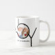 Cette tasse moderne de Noël est décorée du mot JOY sur un arrière - plan noir et blanc. Facilement personnalisable avec votre photo et votre nom.