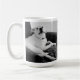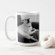 Cette tasse présente une photo en noir et blanc d'Olive, un mélange expressif Labrador avec du texte personnalisable sur le dos.