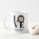 This We Love You Dad Photo Mug est décoré avec le mot LOVE dans une typographie noire audacieuse. Facilement personnalisable avec votre photo et votre nom. Fait un grand cadeau de Fête des pères.