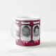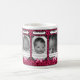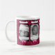 Une tasse rose et noire moderne de photo avec un cadre à la mode de photo de motif d'empreinte de léopard avec les rubans roses mignons attachés dans des arcs. Personnalisez en ajoutant 5 photos de bébé avec des noms.