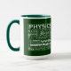 Physique Mug. Avec les mots suivants à l'arrière - Physique, Accélération, Masse, Particules, Thermodynamique, Gravité, Gros Bond, trous noirs, électromagnétique, maxwell, mécanique quantique, cordes, radiation, tesla, force, e=mc2, gaz, atome, proton, nucléaire, hertz, radiation, gamma, absolu 0, nanotechnologie, orbite, fréquence, poids